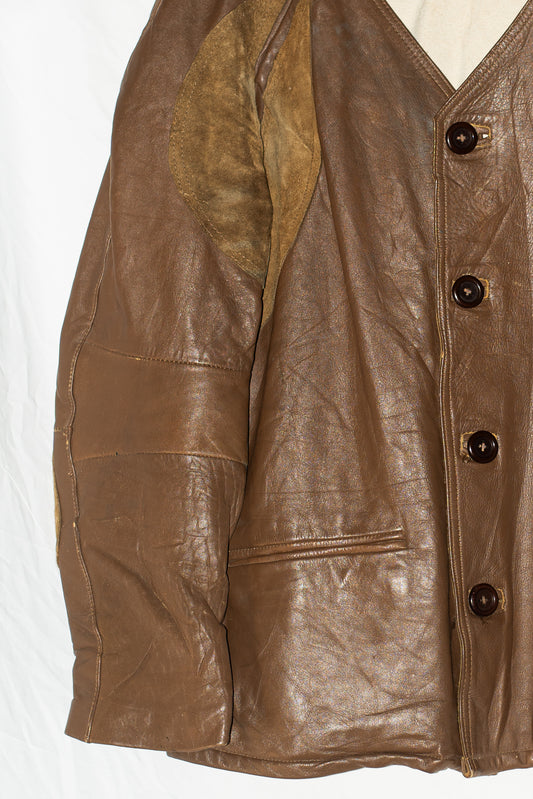 German 1940s Cotton Canvas Lined Leather Shooting Jacket