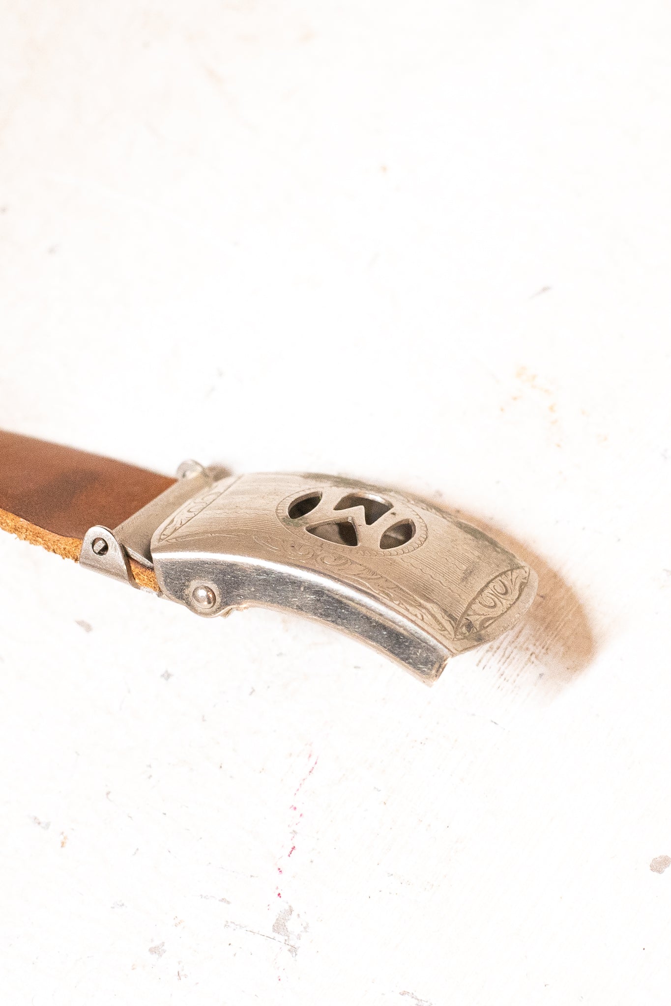 Art Deco 1930s Silverplate Clip On Belt Buckle Name Initial "M" & Leather Blank Belt