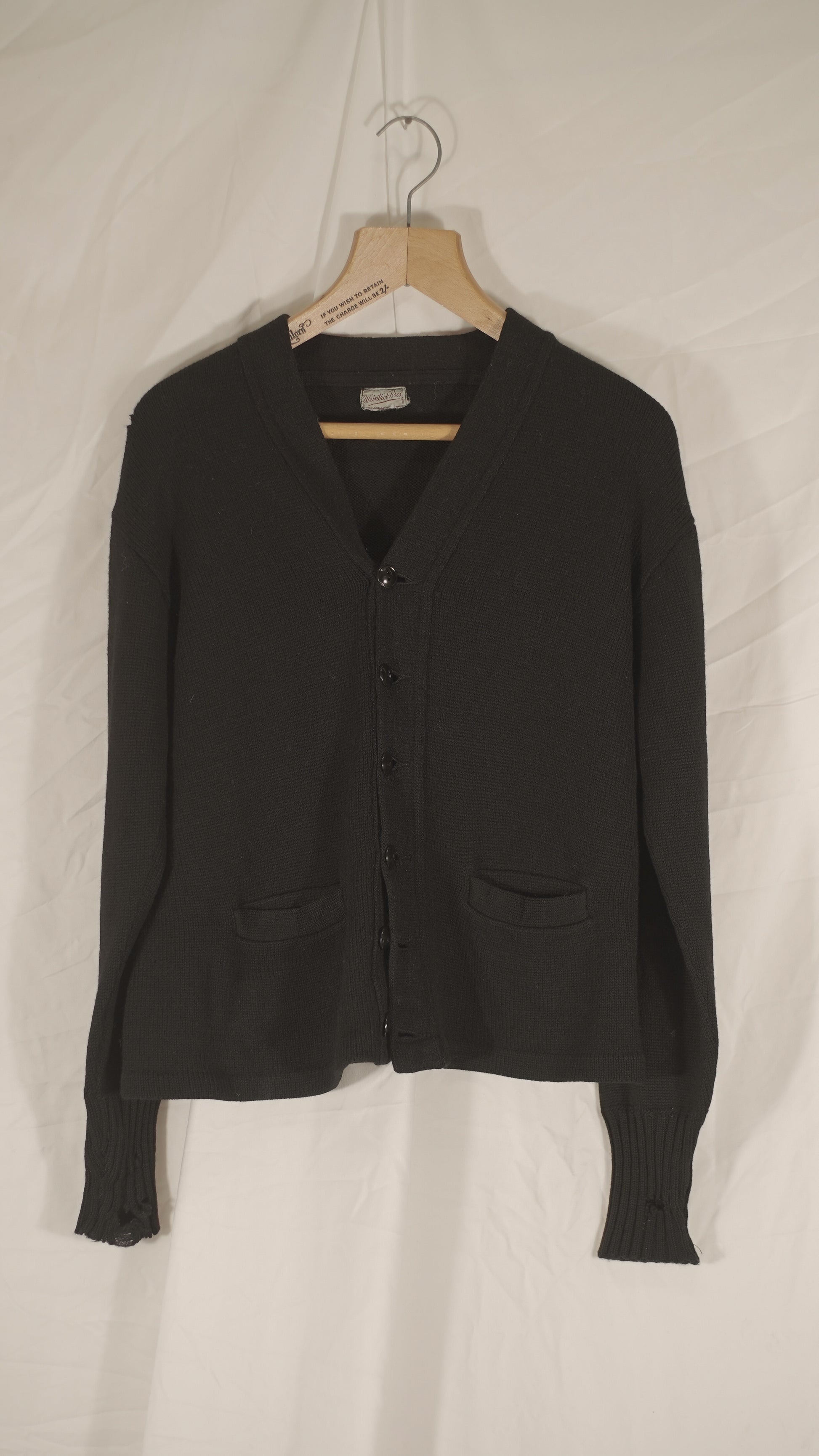 German 1930s Black Woolen Distressed Cardigan